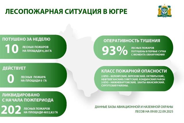 По данным на 09:00 22 сентября, в автономном округе природные пожары не зарегистрированы.