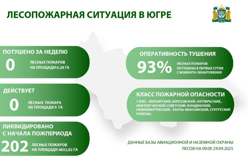 По данным на 09:00 29 сентября, в автономном округе возгорания не зарегистрированы.