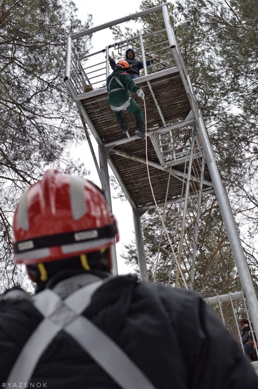 Работа в снаряжении: курсанты учатся спускаться с полной экипировкой, имитируя реальный вылет, когда необходимо брать с собой не только инструменты для тушения, но и палатки, провизию.