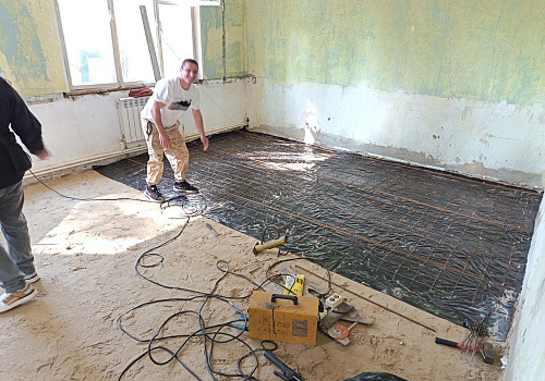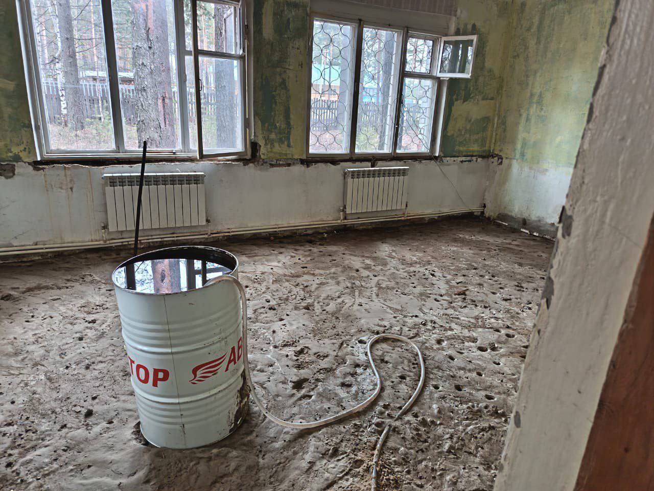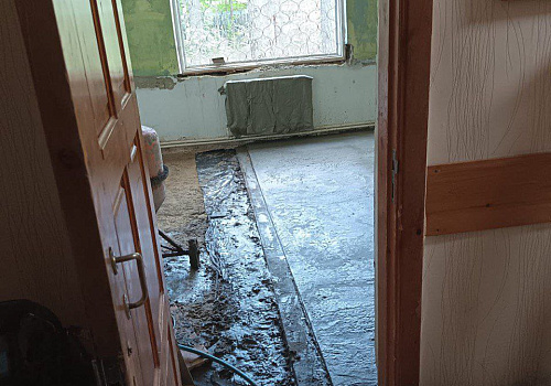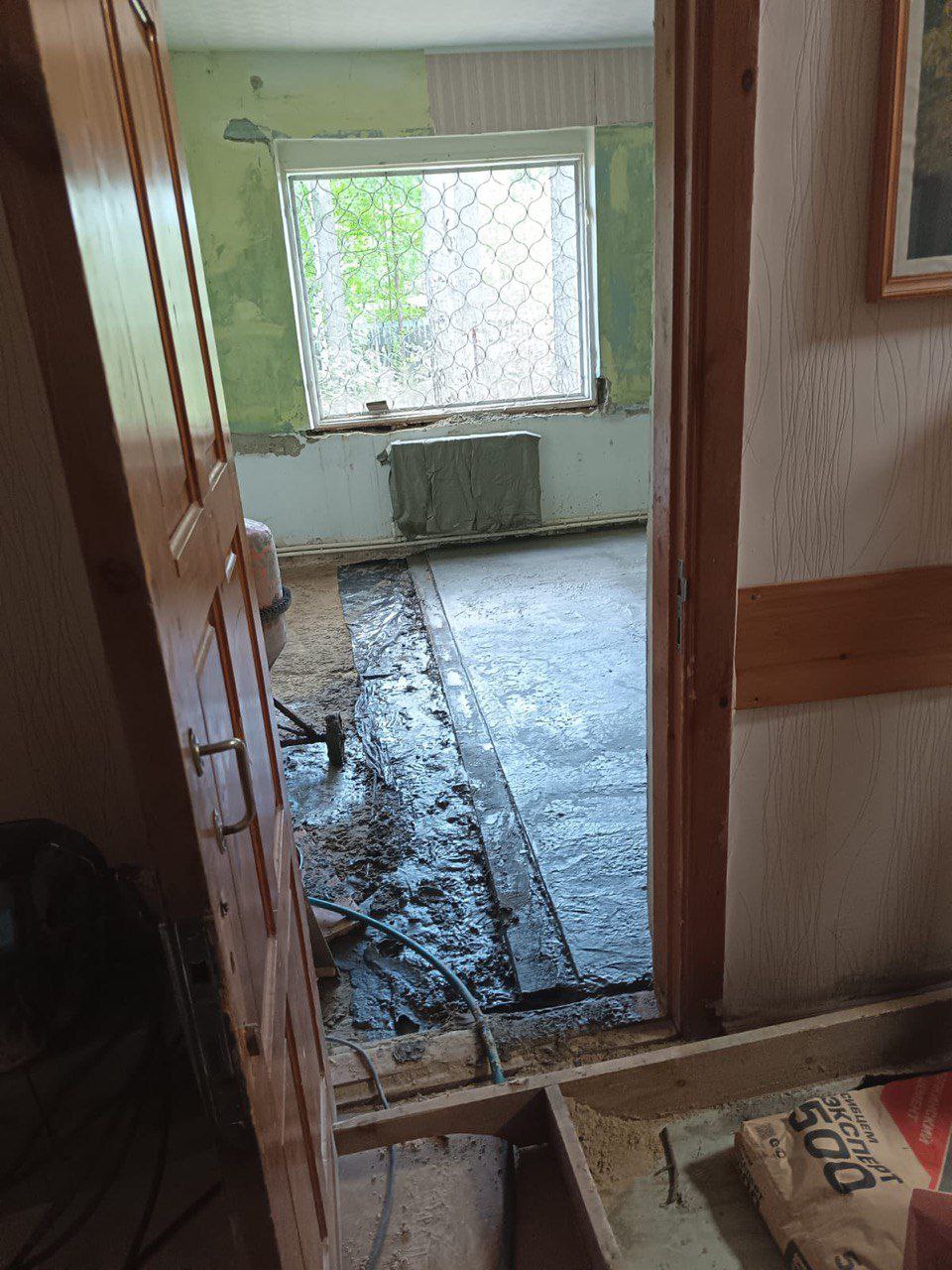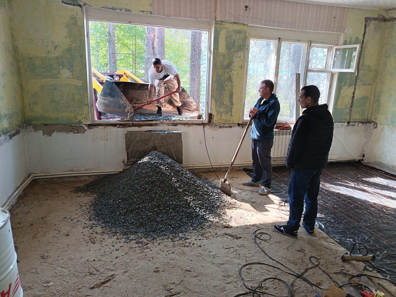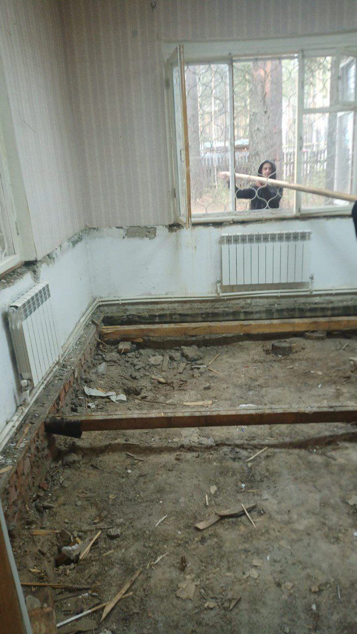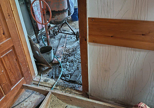 •Полностью заменено напольное покрытие — от демонтажа гнилого пола до укладки плитки через отсыпку щебнем и бетонную стяжку