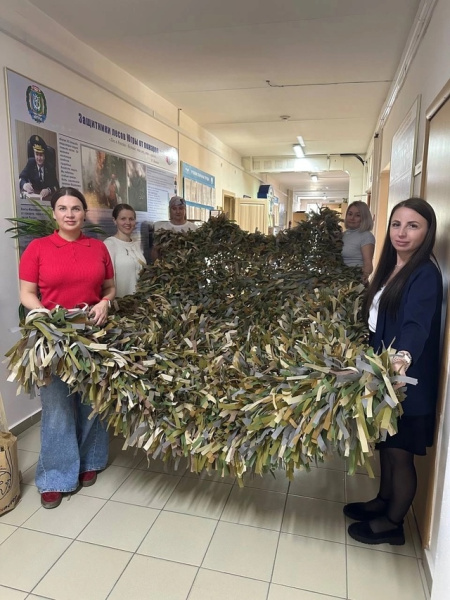 Специалисты учреждения инициативу восприняли радостно. Всего за 5 дней в обеденные перерывы наши коллеги сплели маскировочную сеть и передали её в центр помощи военнослужащим