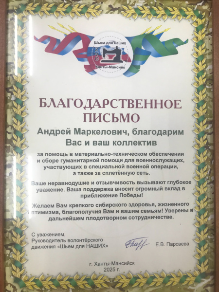 Ваш труд и щедрость помогают нам обеспечивать наших бойцов необходимым, и мы знаем, что это вклад в их безопасность и победу. Спасибо вам за вашу отзывчивость и поддержку!